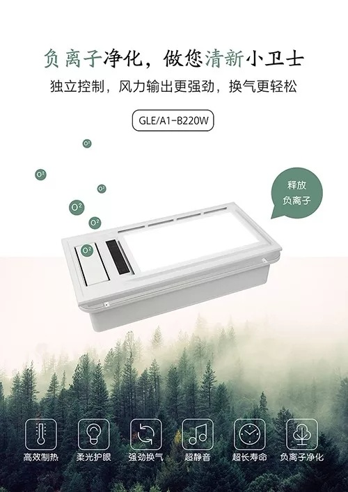 細節之處見品質,格蘭電氣GLE/A1-B220W,強大風暖浴霸。溫和不刺眼 安全無傷害,舒適洗澡 愉快過冬,竭力為您打造最寧靜,最舒適的家 !